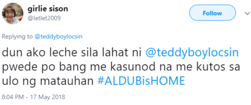 Loving Maine Mendoza of Teddy Locsin Jr. and defending her against the critics makes AlDub nation fans like @forty_james admire the famous journalist. He is not always on his serious note because of love and defending Maine Mendoza many also admire him.